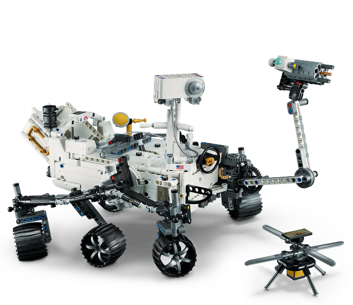 - Conduct a test flight – This set includes a buildable toy version of NASA’s Ingenuity helicopter, which accompanied the Perseverance Rover and was used to test powered flight on Mars
